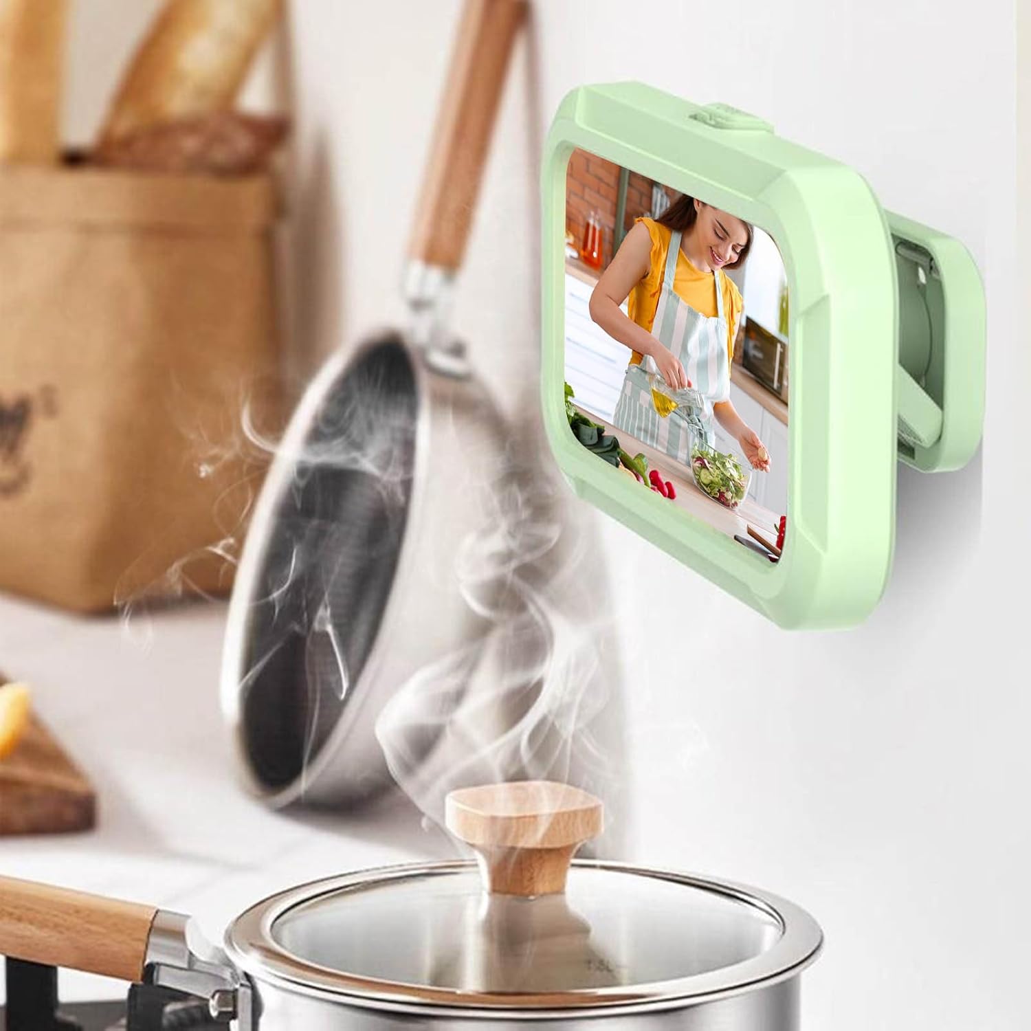 - Ángulo Perfecto: Proporciona el mejor ángulo de visión con rotación flexible de 360 grados para ver videos o reproducir música cómodamente durante la ducha mejorando la comodidad de uso de forma práctica